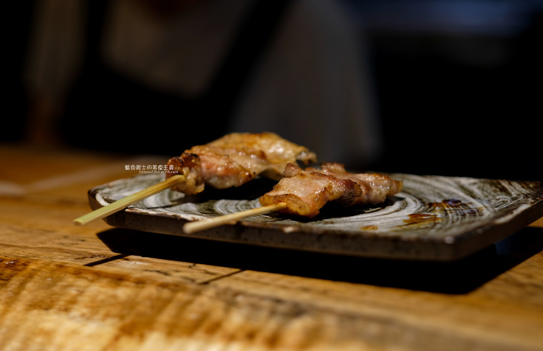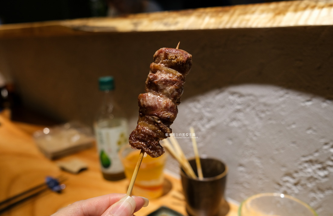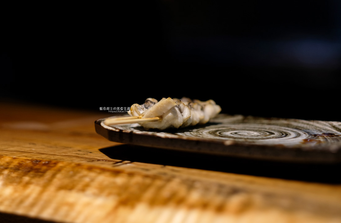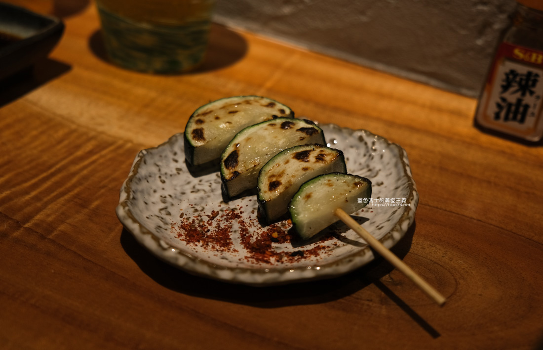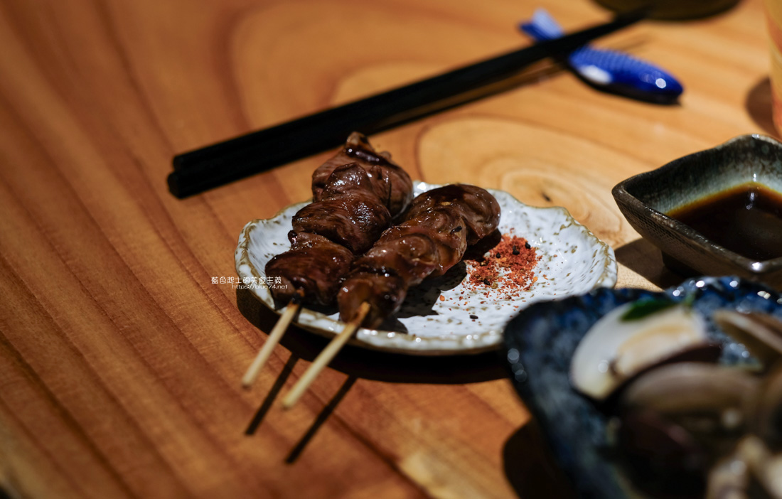 開在忠明南路上,要去拿預定的麵包時,經過看到弦一郎的店面和扛棒,後來加上搜尋串燒、看到評論不錯,喜歡串燒的我,晚餐過來試試,不得不說,老闆烤功厲害,左右桌的客人都是熟客,喜歡輕鬆吃串燒再小酌一下的人可以試試。