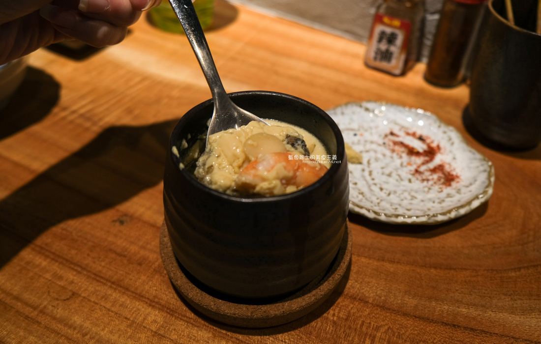 茶碗蒸是店家推薦的,真材實料,裡面有干貝、鮑魚和蝦子,果然如名稱的超有料,聽到其他熟客們也都有點。