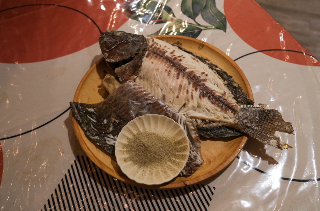 我選了幾道大家推薦的菜色,鹽烤魚不用說,幾乎每桌都有,上桌時已經貼心的將魚皮表面翻開,就像底下的圖片,不用怕會吃到外面的鹽殼,魚滿大一隻,魚肉好鮮,熱騰騰的,真的必點。