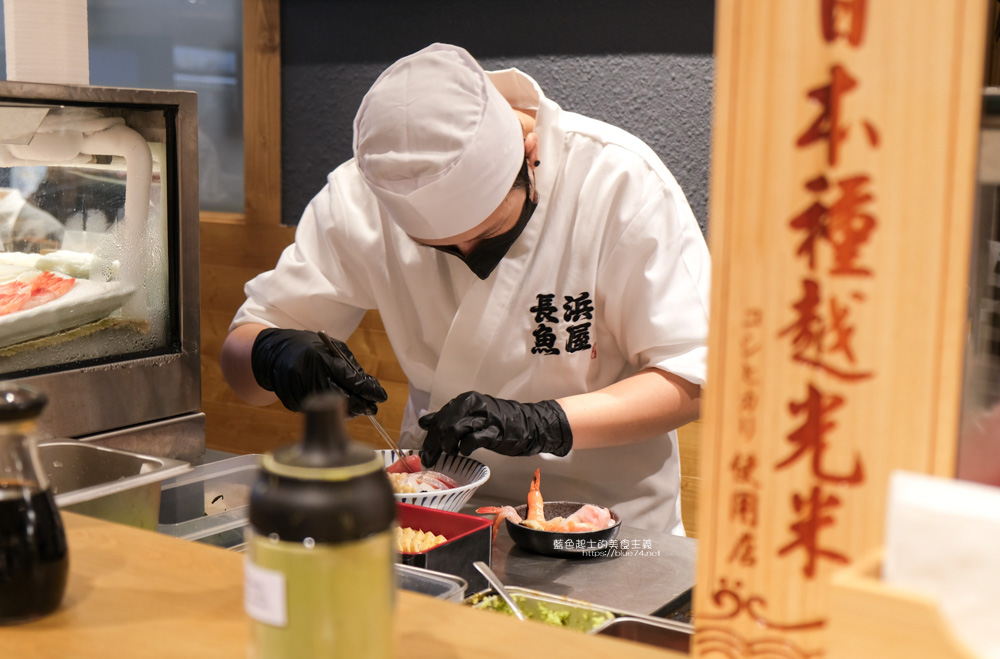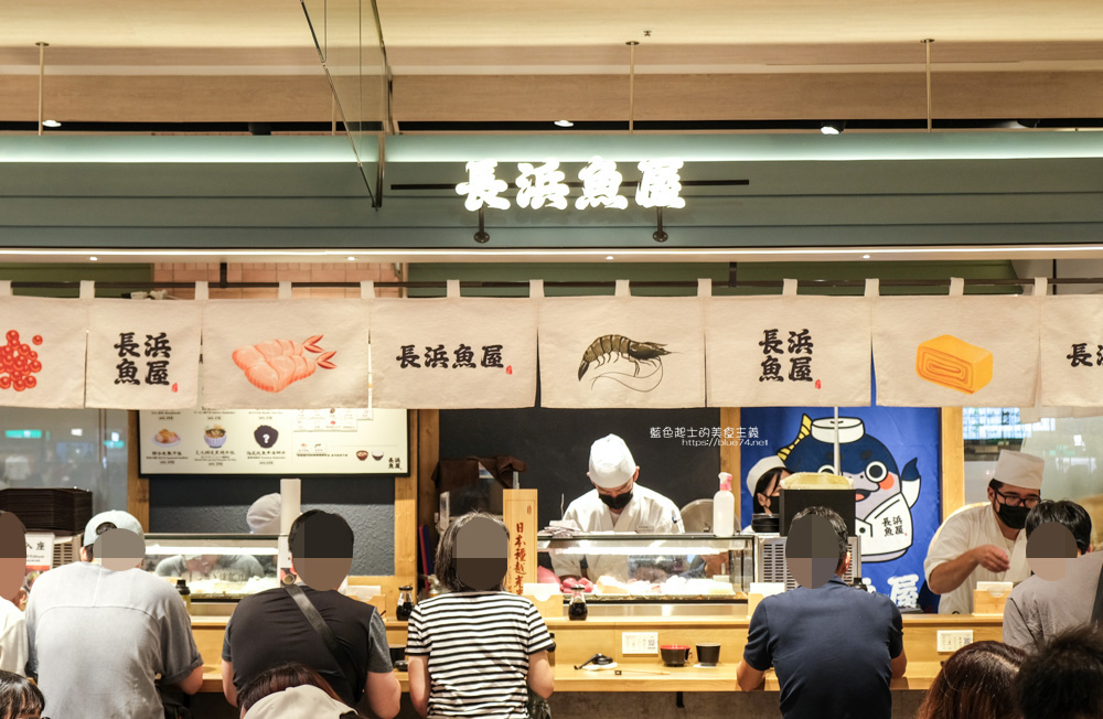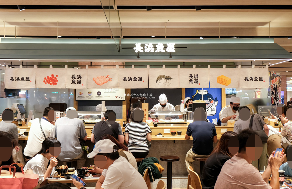 長浜魚屋為初魚餐飲集團旗下的新品牌,主打來自日本九州長濱鮮魚市場空運漁獲,飯量和炙燒可以客製,味噌湯和日式抹茶無限供應,提供吧台式座位,就在牛喜壽喜燒水炊鍋隔壁、31冰淇淋旁邊。