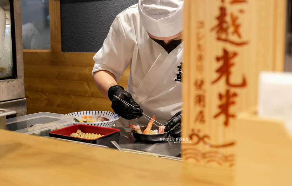 另外原本想吃開幕限定的「月見四喜丼」,可惜賣完了,無緣吃到,店員推薦我吃鮭魚親子丼,新鮮的鮭魚生魚片搭配了鮭魚卵,口感增添。