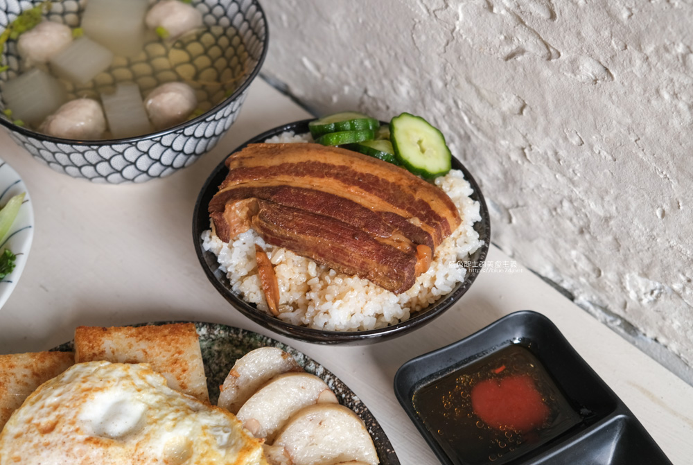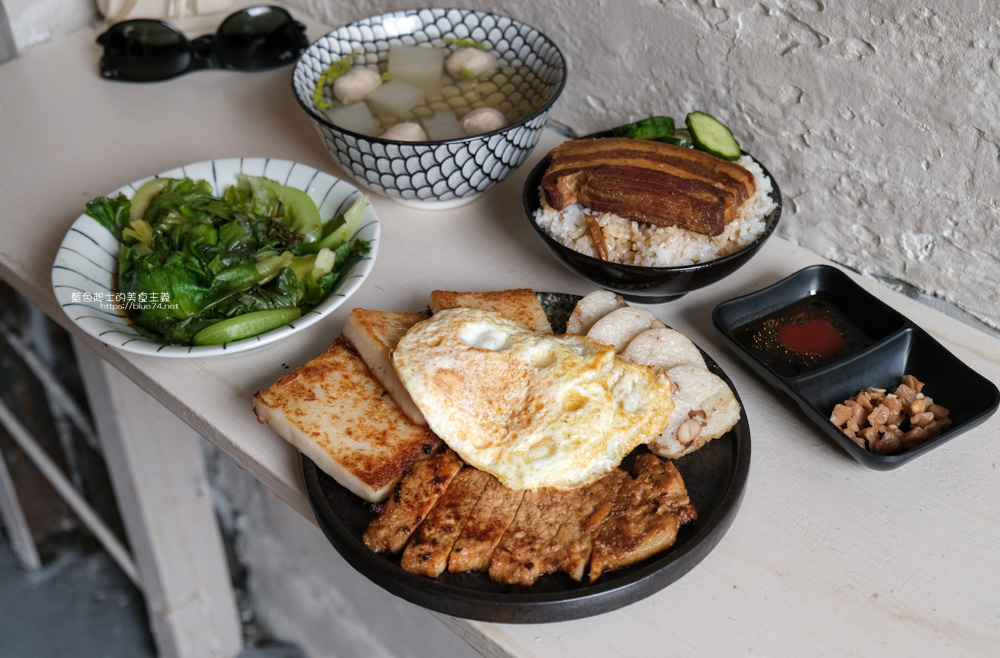 推薦可以點「超值豪華全餐」,蘿蔔糕、糯米腸和荷包蛋都有,另外爌肉和醬油豬排擇一,我選了豬排,因為爌肉飯想直接點一碗來吃,豪華全餐可以任選湯品或飲品其中一項。