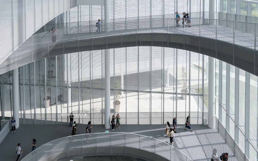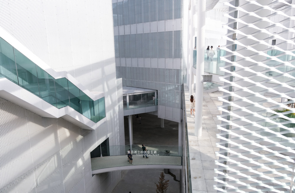 將建築和自然以設計融為一體,由裡面看著城市景觀,由外頭也可以看著這幾棟壯觀的建築。