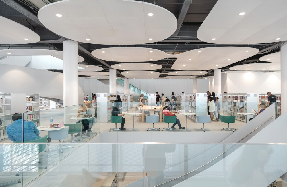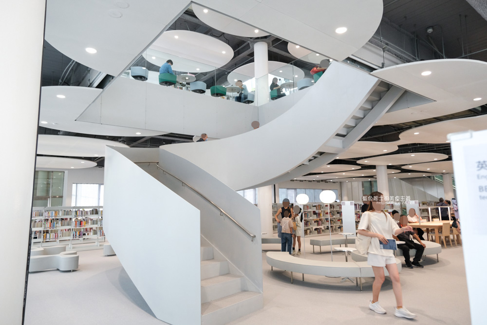 圖書館可以一層一層的上樓,也有電梯和手扶梯的上下搭乘工具。