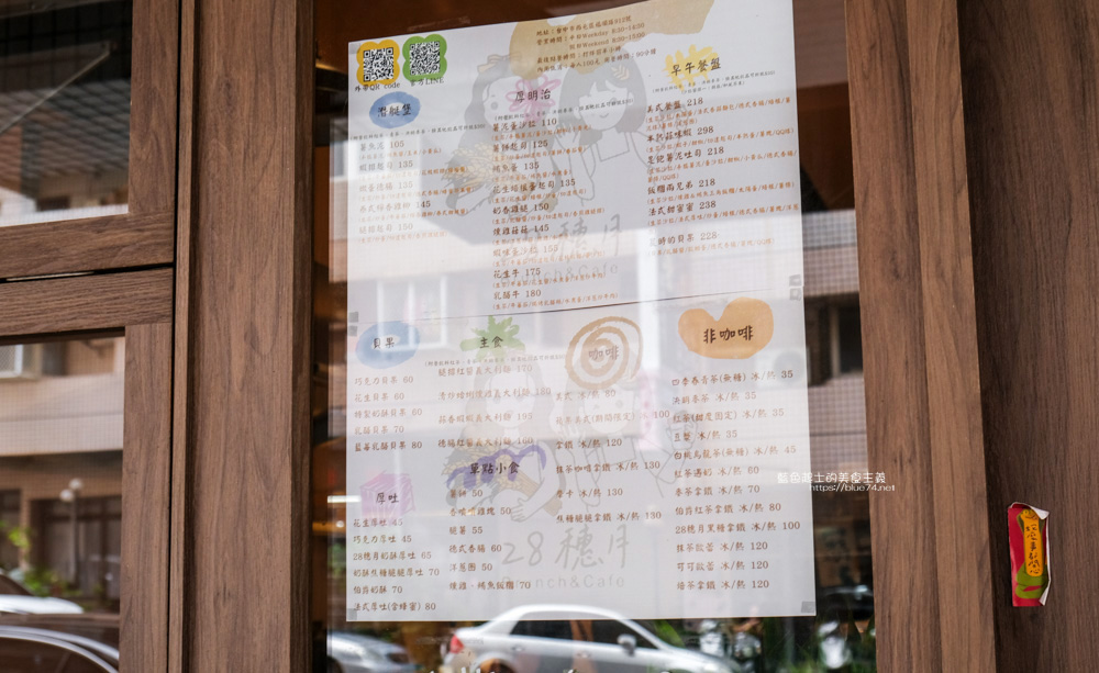 兩位年輕的女孩在28歲開了28穗月,扛棒上就是兩個可愛的女孩圖繪,木質調的空間,最近搜尋住家附近的早餐才發現這家,是會想回訪的早午餐店。