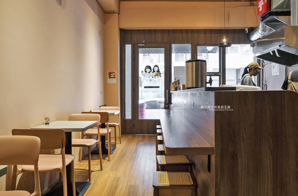 有吧台位置、右邊的兩人座位,最裡面有一張四人桌。